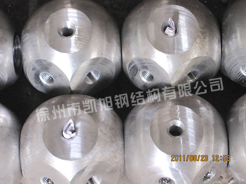 螺栓球采用45#優質鋼,所有原材料進廠后均進行3/1000抽樣理化力學性能測試。然后到專業鍛壓單位用250公斤或750公斤空氣錘模鍛而成球坯。毛坯經正火處理,使其硬度達到HB197~225。毛坯要求無裂紋、過燒、麻點等缺陷,橢圓度不超過1%倍直徑。